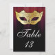 Carte de numéro de table de masquerade