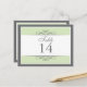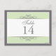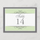 Traditionnelle mais contemporaine est au centre de cette belle carte de table. Vert doux bordé de blanc et gris charbon de bois composent la base. Le panneau blanc contient les informations de la table. Conception recto-verso pour la commodité de n'importe quel angle. Disponible en couleurs alternatives avec des produits correspondants.