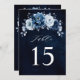 Elégante carte de numéro de table à thème Dusty bleu / marine avec élégant bouquet de Dusty bleu, marine, ardoise rose des bourgeons de fleurs et bleu eucalyptus feuilles. Veuillez me contacter pour toute aide sur la personnalisation ou si vous avez besoin d'un autre produit avec ce design.
