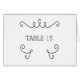 Carte de numéro de Mariage Monogramme moderne et simple avec un élégant motif tourbillon en noir. Facile à customiser, ajoutez le ou les numéros de table appropriés dans le champ de texte fourni. Cliquez sur "Customiser" pour trouver d'autres options de personnalisation.