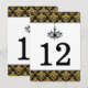 Carte de numéro de table en damassé noir et or ave