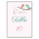 carte de numéro de table florale d'oiseaux d'amour