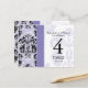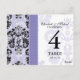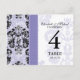 Customisez cette jolie carte de numéro de table mariage damassé noir et violet clair avec un ruban violet design. Personnalisez-le avec le nom de la mariée et du marié, le nom de famille et la date du mariage au dos et à l'avant de la carte de table. Design © Chrissy H. Studios, LLC. Tous droits réservés.