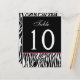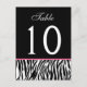 Carte de numéro de table Mariage rose et noir Zebr