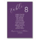Cartes de numéro de table violet de script moderne et élégant avec des noms.