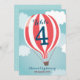 Personnalisez cette jolie carte de numéro de table élégante, conçue avec une illustration originale d'une montgolfière rayée rouge et blanc volant haut dans le ciel bleu avec des nuages blancs.