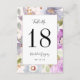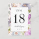 Élégantes cartes de numéro de table avec un fond d'aquarelle florale de lilas, fleurs roses et grises. Une bordure mauve atténuée avec un fond blanc encadre vos messages. Personnalisez cette carte de numéro de table avec votre date de mariage personnalisée, vos noms et numéros de table. Le design du verso est identique à celui du recto. Conçu pour coordonner avec notre collection de mariage florale Floraison de lilas.