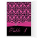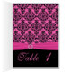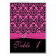 Carte de numéro de table rose et noire Damask