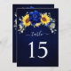 Élégante et moderne carte de numéro de table de mariage rustique de campagne avec tournesol jaune vif, pivoines bleu royal, baby's breath, couronne / cadre floral de gypsophile avec feuilles d'eucalyptus. Trouvez plus de modèles et de variations correspondants dans ma boutique "blissweddingpaperie". Et n'hésitez pas à me contacter pour une personnalisation ou des articles correspondants supplémentaires.