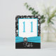 Cette carte postale de numéro de tableau de flocons de neige noir et blanc avec ruban bleu aqua FAUX et médaillon de flocons de neige correspond au faire-part de mariage ci-dessous. Vous devez changer le numéro 11 à chaque numéro dont vous avez besoin, l'ajouter à votre panier, puis revenir et répéter le processus avec chaque numéro dont vous avez besoin. Des rabais sur la quantité peuvent s'appliquer une fois que vous avez ajouté tous les articles à votre panier. Si vous avez des questions, contactez niteowlstudio@gmail.com.