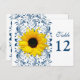 Le numéro de table sur cette carte de mariage de tournesol floral bleu marine et blanc ou de numéro de table spécial est personnalisable. Vous pouvez le modifier à l'aide de l'option personnalisée. Modifiez le numéro de table, ajoutez une quantité d'une à votre panier, puis répétez le processus pour toutes les cartes dont vous avez besoin. Pour effectuer des modifications plus poussées de la carte, y compris la modification de la couleur, de la police, de la couleur de police ou de la disposition de la police arrière - plan, choisissez l'option personnaliser. Il s'agit d'une grande carte de numéro de table pour un mariage avec un thème tournesol. Simple, joli et gai.