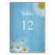 Notre Rustic Mariage campagnard Photo Table Numéro de carte ont un bleu en bois peint pour l'arrière - plan, fleurs marguerites blanches avec une main blanche regarder pour faire la carte se sentir rustique. Le numéro de table se trouve des deux côtés de la carte. D'un côté de la carte, le numéro est très grand, il sera donc facile à voir pour vos invités. De l'autre côté, personnalisez la carte en insérant votre photo, changez votre nom et votre date de mariage pour faire de la carte un souvenir que vos invités peuvent ramener à la maison à la fin du mariage.