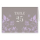 Papillon sucré et dainty Numéro de la table Florale Carte avec un arrière - plan gris poussiéreux muet et papillons violets et ornements de vigne fleurie. Cette élégante carte de table de mariage est le choix idéal pour un mariage moderne et chic. Facile à customiser, il suffit d'ajouter le ou les numéros de table appropriés dans le champ de texte fourni. Cliquez sur le bouton "Customiser" pour trouver d'autres options de personnalisation.