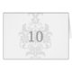 Simple avec élégance chic décrit cette carte subtile Mariage damassé Numéro de Table avec un arrière - plan gris clair damassé fleuri. Cette carte de table classe est parfaite pour un mariage traditionnel et peut être facilement customisé avec un ou des numéros de table ou vos coordonnées de mariage. Pour plus d'options de personnalisation, cliquez sur le bouton Customiser.