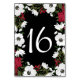 Numéros de table personnalisables avec fleurs blanches et rouges et script de calligraphie moderne. Il s'agit d'une partie d'une suite mariage "ANEMONE BLOOMS" - articles correspondants sont disponibles.