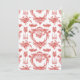 Une carte de panneau présentant une toile rococo personnalisée en rouge fraise sur fond blanc. Le verso est laissé vierge et blanc pour vos propres mots ou personnalisation