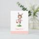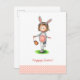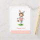 Carte adorable avec une illustration d'une fille en costume de lapin allant à une chasse aux œufs. L'illustration a été peinte à l'origine avec des marqueurs et des crayons. Le texte indique "Joyeuses Pâques !" mais vous pouvez le personnaliser avec votre propre formulation. Plus de produits avec cette image peuvent être trouvés dans ma boutique. Illustré et conçu par Patricia Alvarez.