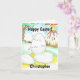 Une carte de Pâques dinosaure pour les fans de dinosaures et les paléontologues, avec un monde de dinosaures, une scène jurassique, sur le devant avec des œufs de dinosaures qui se fissurent, un volcan en éruption et un arbre forestier sur le devant - avec un message et un nom personnalisables.