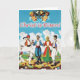 Une autre carte grecque nostalgique de Pâques avec le salut pascal en anglais. Danse, agneau rôti et même cloches et chérubs. Opa !