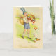 Carte de voeux Retro / Vintage de Pâques. Adorable jeune garçon portant un casquette lapin portant un panier rempli d'oeufs de Pâques qui tombent de son panier ! Joyeuses Pâques !