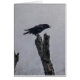 Ce corbeau était perché en hauteur sur un arbre mort par jour très venteux.