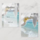 Le design raffiné et raffiné présente une scène marine bleu marine turquoise avec des vagues blanches qui s'écrasent sur la côte. Eau claire fraîche et sable blanc avec ciel bleu et nuages blancs bouffants. Au premier plan, une belle fleur d'orchidée blanche en gros plan en haute qualité. Cette image zen et sereine est parfaite pour un mariage sur la plage, un voyage de vacances à thème spa ou un événement d'affaires. Détendez-vous en profitant d'un massage, d'une manucure spa ou d'une pédicure au salon. Profitez de la détente et de la tranquillité au bord de la plage et des côtes de l'océan. Tous les Designs Copyright © 2012 www.CustomInvitesOnline.com Cette conception est disponible en collection complète!