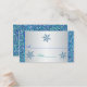 Cette carte de place festive d'hiver aqua bleu, vert et gris argent Quinceañera avec des flocons de neige de parties scintillant IMPRIMÉE FAUX sur elle correspond à l'invitation de la fête Quinceañera ci-dessous. Envoyez un courriel à niteowlstudio@gmail.com avec toute demande.