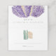 Cartes de place chic et tropicales pliées pour la réception de mariage ou les tables de dîner de répétition. Doté d'un cyprès peint en aquarelle et d'une ferme française d'un côté et d'un tableau de champs de lavande de l'autre. La typographie chic et moderne finit les cartes et une couleur violette lavande apaisante pointe du dessous. Customisez avec votre nom et votre date de mariage au verso.
