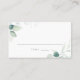 Ajoutez ces cartes de lieux personnalisables au paysage de table de votre événement. Il présente l'aquarelle illustrant les feuilles et les fleurs d'eucalyptus. Personnalisez ces cartes de lieux verdoyantes en y ajoutant des noms, des dates et des choix de repas. Ces cartes de place aquarelle à eucalyptus plat sont parfaites pour les mariages, baby showers, douches nuptiales, anniversaires, et bien plus encore.