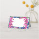 Carte de table en carrelage bleu avec bougainvillée rose – Élégant décor de table floral