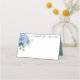 Cette carte de place de nom plié est présentée en blanc de base avec un beau accent floral bleu hydrangea et a des exemples de noms personnalisés. A une couleur bleu fumée à l'intérieur. Customisez cet élément et modifiez les noms et la date à ce dont vous avez besoin avec ce modèle.