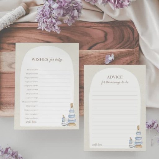 C'est un Boy Blue Boho Blocks Et Toys Baby shower Place Card. Éléments correspondants disponibles.
