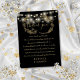 Un mariage élégant merci carte de réception avec de jolies lampes à cordes. Personnalisé avec votre message de remerciement spécial ensemble dans la typographie or stylisée sur un arrière - plan noir. Un gardien spécial vous remercie pour vos invités. Conçu par Thisisnotme©