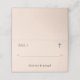 Le design avant présente un arrière - plan rose champagne au numéro de table qui est affiché en haut à gauche dans une police élégante couleur argent. Center affiche une fine ligne couleur argent pour le nom de l'invité. Une saveur délicate est présentée de part et d'autre. Une croix argentée est affichée dans le coin supérieur droit. Les prénoms des couples sont affichés ci-dessous en une impression claire. Le design intérieur consiste en votre message de gratitude au-dessus d'une délicate floraison. L'Arrière - plan est rose champagne. Également disponible en blanc et en coordonnées avec la "Suite Mariage purement catholique".