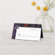Carte de place pliée élégante faite dans le classique clan Brown tartan plaid motif. Un noeud triangulaire celtique de couleur argent décore le bord de la zone de texte blanc. Personnalisé à la main pour chaque client à la réception.