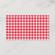 Customisez la couleur à l'avant et à l'arrière derrière le graphique motif sans couture en vichy tume pour correspondre à votre palette de mariages. Vous pouvez également modifier la couleur de bordure et les lignes du étiquette à l'avant de ces cartes de place. Une police moderne simple pour le texte du numéro de tableau est utilisée, mais la couleur et le style peuvent également être customisés. Rouge et blanc rustique en vichy vérifier les cartes motifs pour un mariage de grange de campagne.