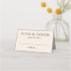 Les cartes d'escort mariage noir et blanc chaleureuses et neutres modernes et chic présentent un design monographique typographique noir élégant avec un texte personnalisé élégant qui peut être personnalisé avec les noms des mariés et des mariés et la date du mariage. Espace avec des lignes (facultatif - peut être supprimé) pour un nom d'invité et le numéro de table est inclus.
