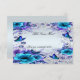 Jolies fleurs bleues et violettes avec papillon. Faites savoir à vos invités où ils doivent s'asseoir avec cette jolie carte de placement. Personnalisez la carte en modifiant le texte dans les champs fournis au recto et au verso. Vous pouvez changer le style de police, la taille, la couleur, ainsi que le type et le style de papier.