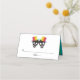 Deux cabines de crâne et une carte de mariage gay confetti colorée qui comprend deux cabines de crâne avec des casquettes à l'avant tandis qu'à l'arrière il y a un groupe de confettis aux couleurs arc-en-ciel.