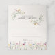 Elégante carte de mariage à fleurs avec fleurs sauvages d'aquarelle et feuillage dans les tons rose, jaune, violet, bleu et vert bordant le fond du design avec un arrière - plan crème. Les cartes de place florales boho s'inversent pour afficher vos noms et date mariage à l'intérieur d'un cadre rectangle de fleurs sauvages. Les cartes de places rustiques fleur sauvage mariage sont parfaites pour les mariages du printemps et de l'été.