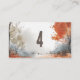 Couleurs terreuses d'un paysage d'automne en orange rouillé. Aquarelle illustrant les arbres dans les couleurs changeantes de saison. Grand numéro de table à l'arrière dans ce design rustique. Parfait pour un mariage de automne.