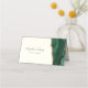 Cette élégante table mariage moderne réservée carte de place dispose d'une bordure en aquarelle vert émeraude ornée d'une parties scintillant en faux or. L'avant de la carte donne de l'espace pour le nom et le numéro de table du client. Le mot "table" apparaît en écriture manuscrite verte avec des swashes avant et après sur un arrière - plan en ivoire. Customisez le dos de la carte avec les noms de la mariée et du marié en écriture manuscrite verte et la date du mariage ci-dessous en sans serif font.