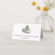 Le design de la carte de lieu chic Wintry offre de l'espace pour votre nom d'invité et numéro de table, surmonté d'une seule illustration de pin aquarelle en vert chasseur muet.