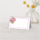 This folded name place card is shown in basic white with a lovely vivid color's floral bouquet with an accent frame in a color of hot pink.