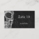 These Gothic Halloween wedding theme place cards feature a macabre cool grunge texture black and white printed half skull head. Spooky, creepy, evil, sinister. Goth text, trendy, unique, modern, scary design. Image copyright Marg Seregelyi Photography.