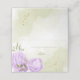Carte de table botanique romantique avec de jolies fleurs de couleur lilas et quelques belles feuilles vertes.
