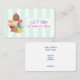 Carte de visite à thème laitier, avec vos détails sur le dos. Moderne et tendance. Citation amusante avec l'illustration d'une crème glacée à 3 boules sundae avec des arrosages colorés. Un cône glacé avec des boules de chocolat, fraise et vanille. Un bol de glace néopolite avec une cerise sur le dessus. Des fraises et un ananas sont assis à côté des bols. Motif à rayures vert et blanc à la menthe en arrière - plan.