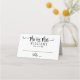 Les cartes d'escorte mariages modernes Mr et Mrs sont dotées d'un système de couleurs moderne en noir et blanc avec une typographie manuscrite de calligraphie audacieuse et ludique avec des détails de défilement élégants. Personnalisez le texte personnalisé décontracté mais élégant pour votre jour de mariage. Inclut l'espace pour écrire un nom d'invité et un numéro de table.