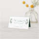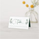 Un script de calligraphie verte simplement élégant avec deux feuilles d'eucalyptus aquarelle de chaque côté de la carte de place de table pour votre mariage de automne. Décor chic et moderne mariage du soir pour un jardin en soirée.