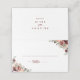 Cette carte de mariage de calligraphie florale d'été rustique est parfaite pour un mariage simple. Le design est composé de fleurs d'aquarelle bordeaux, roses et rousses avec des feuilles verts dans un arrière - plan verni brun. Personnalisez le dos de la carte avec les noms de la mariée et du marié et la date.